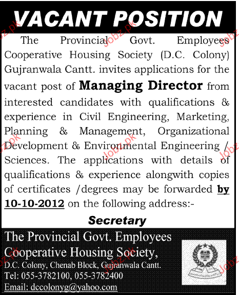 Apply as per details in job advertisement. Login to view further details of how to apply via https://www.jobz.pk online.