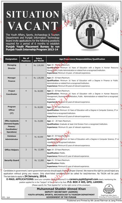 Latest Government Management Posts Lahore 2025