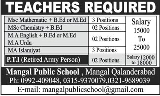 Latest Mangal Public School Teaching Posts Abbottabad 2025