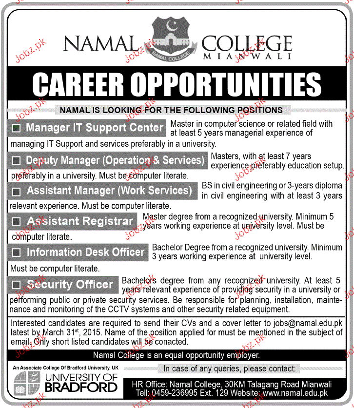 Apply as per details in job advertisement. Login to view further details of how to apply via https://www.jobz.pk online.