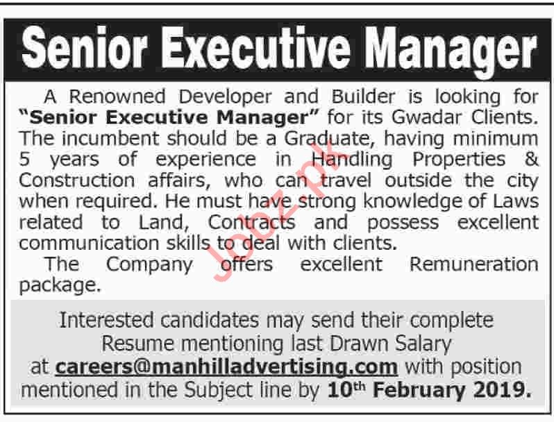 Manhill Advertising Pvt Ltd Senior Executive Manager Jobs