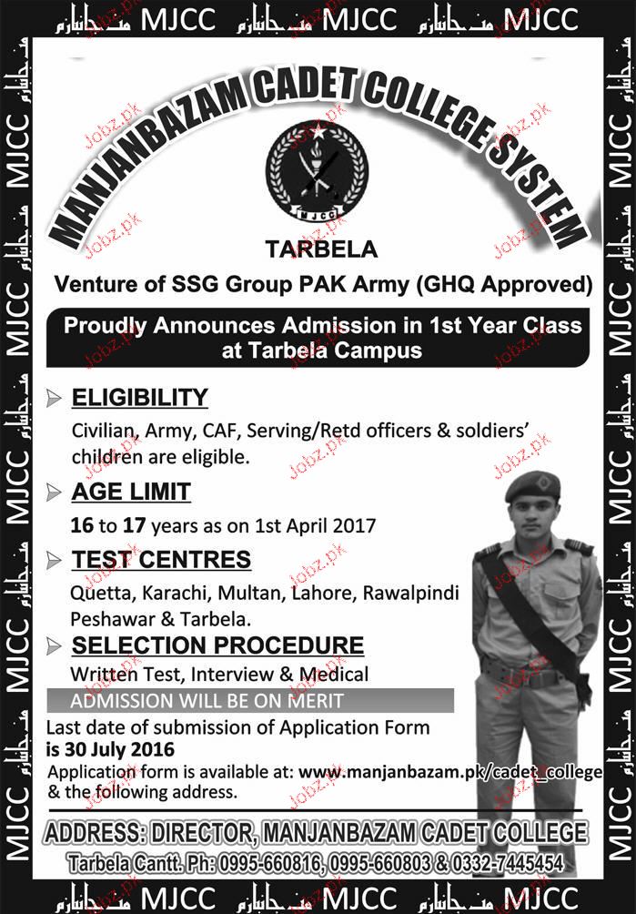 Manjanbazam Cadet College System Admission in Class XI in Terbela. Read newspaper ad for exact details.