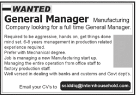 Apply as per details in job advertisement. Login to view further details of how to apply via https://www.jobz.pk online.
