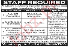 Manufacturing Company invites applications for job positions advertised in daily Jang dated 15 October 2023 for following vacancies in Lahore, lahore Punjab Pakistan.