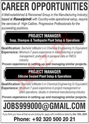 Latest Management jobs and others Private jobs in Manufacturing Industry closing date is around December 31, 2024, see exact from ad. Read complete ad online to know how to apply on latest Manufacturing Industry job opportunities.