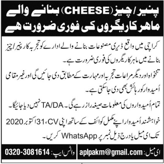 Apply as per details in job advertisement. Login to view further details of how to apply via https://www.jobz.pk online.