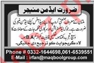 Maqbool Group Multan Jobs 2018 For Admin Manager