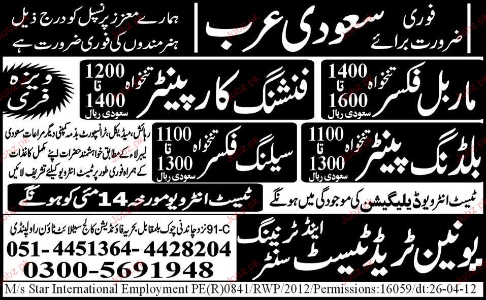 Marble Fixer, Finishing Carpenter Job Opportunity