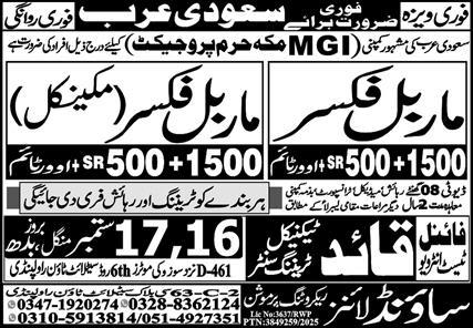 Sound Lines Recruiting Promotion is looking for candidates for following posts as per job advertisement published in daily Express Newspaper of September 7, 2025 for location - Select Area - Makkah, taif Saudi Arabia: