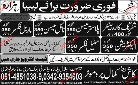 Marble Fixers, Plaster Mason, Shuttering Carpenters Wanted