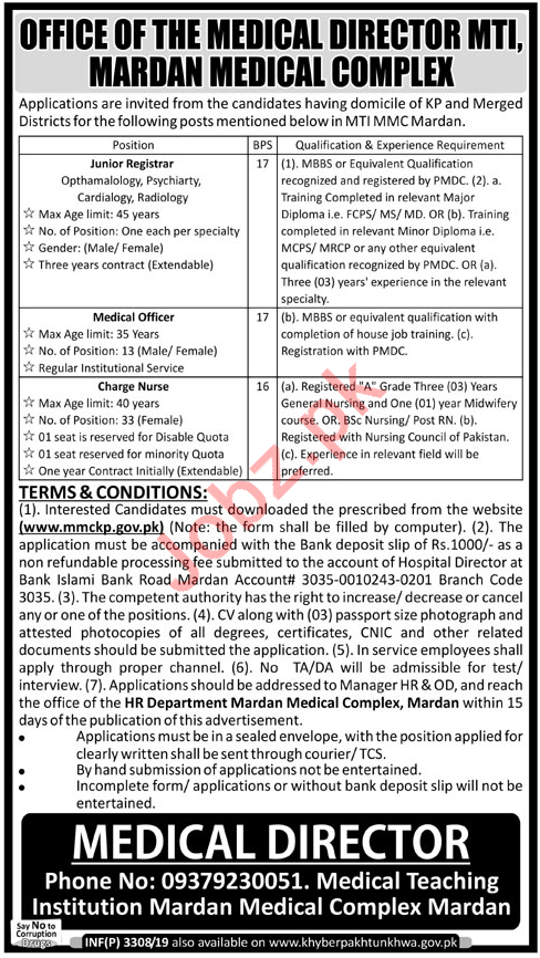 Mardan Medical Complex MMC MTI Mardan Jobs 2019