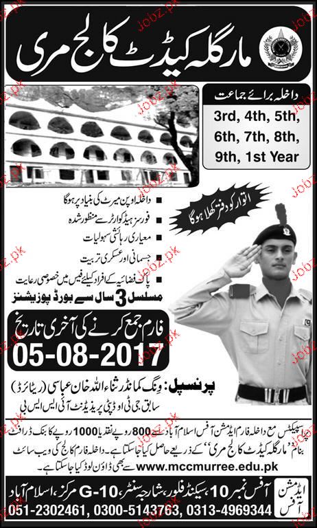 Margalla Cadet College Admission in Class III to XI in Murree. Read newspaper ad for exact details.