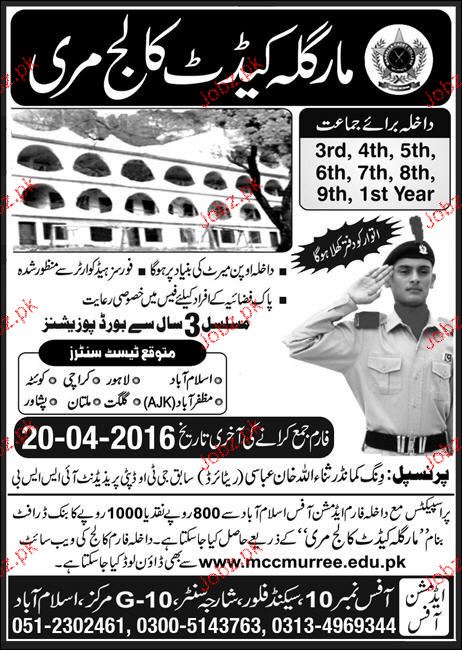 Margalla Cadet College Murree Admission in Class III to XI in islamabad. Read newspaper ad for exact details.