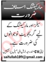 Marketing Company is looking for candidates for following posts as per job advertisement published in daily Jang Newspaper of June 29, 2025 for location Lahore, lahore Punjab Pakistan: