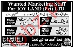 Vacancies in Joy Land Pvt LTD Advertisement July 2020