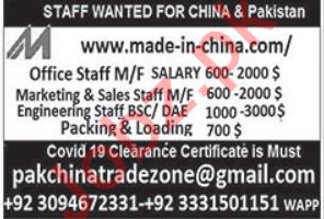 Marketing & Engineering Staff Jobs 2021 in China & Pakistan