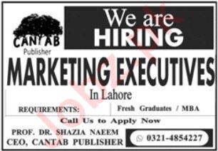 Latest Cantab Publisher Marketing Posts Lahore 2025