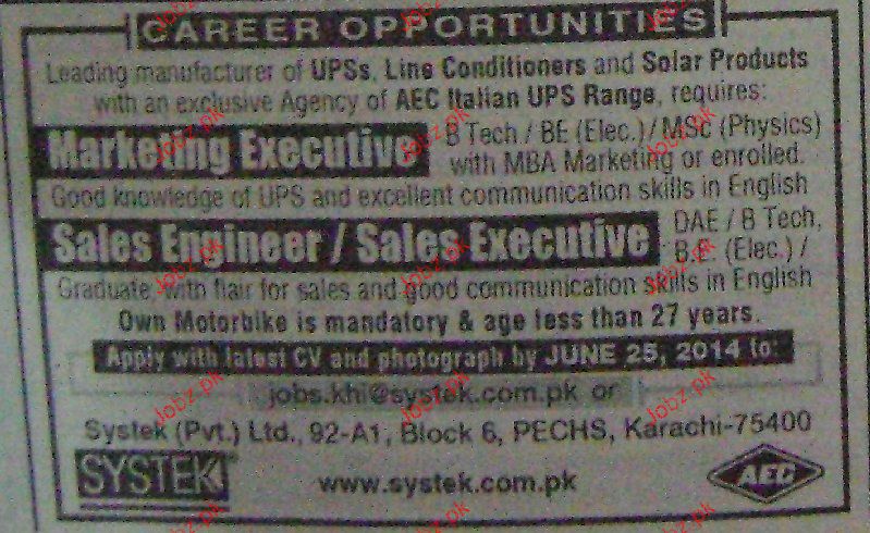 Marketing Executives, Sales Engineers Job Opportunity