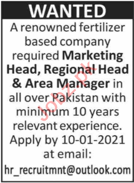 Vacancies in Fertilizer Company Advertisement December 2020