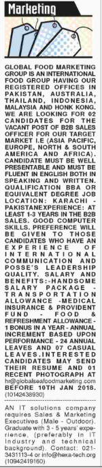 Apply as per details in job advertisement. Login to view further details of how to apply via https://www.jobz.pk online.