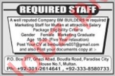 Apply as per details in job advertisement. Login to view further details of how to apply via https://www.jobz.pk online.