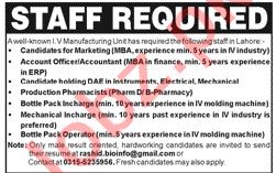 Latest Manufacturing Company Industrial Posts Lahore 2025