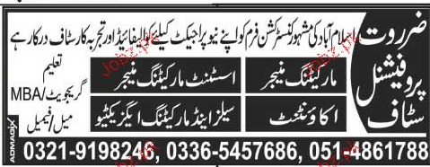 Latest Private Company Marketing Posts Rawalpindi 2025