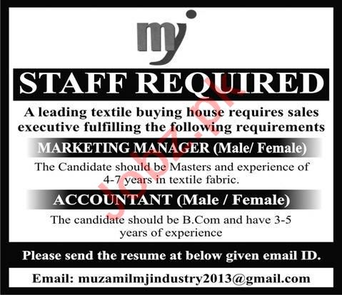 Marketing Manager & Accountant Jobs 2020 In Mj Muzammil