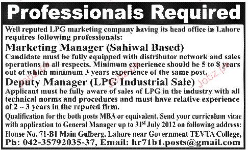 Apply as per details in job advertisement. Login to view further details of how to apply via https://www.jobz.pk online.