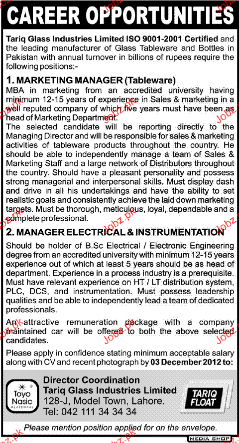 Marketing Manager and Manager Electrical Job Opportunity
