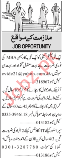 Vacancies in Private Company Advertisement October 2020