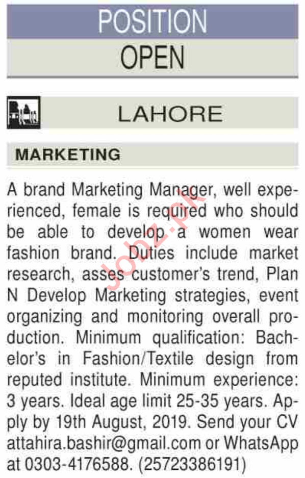 Apply as per details in job advertisement. Login to view further details of how to apply via https://www.jobz.pk online.