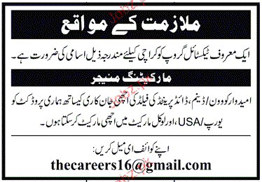 Marketing Manager is required in Karachi.
