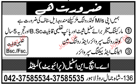Marketing Manager, Supervisor and Roling Man Required