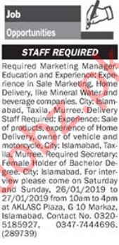 Vacancies in Private Company Advertisement January 2019