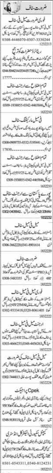 Private Company Islamabad, islamabad Islamabad Pakistan invites applications from eligible candidates for the post of pro, driver, supervisor, store keeper, office staff, computer operator, call operator, assistant manager, naib qasid, receptionist, public relation officer, manager, female receptionist, accounts manager, marketing staff, office secretary, female office staff, guard, telephone operator, office boy, security guard, khateeb and marketing officer as per advertisement of March 18, 2022 published in daily Dunya Newspaper. Persons with Matric, Intermediate, Bachelor and Middle etc. education can apply.