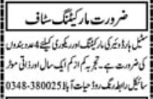 Marketing Company Hayatabad Peshawar, peshawar Khyber Pakhtunkhwa KPK Pakistan invites applications from eligible candidates for the post of marketing officer and recovery officer as per advertisement of August 29, 2025 published in daily Mashriq Newspaper. Preferred Education is Intermediate, Bachelor, Others and BA etc.