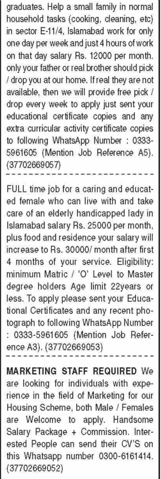 Apply as per details in job advertisement. Login to view further details of how to apply via https://www.jobz.pk online.