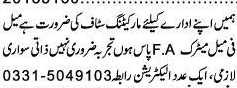 Apply as per details in job advertisement. Login to view further details of how to apply via https://www.jobz.pk online.