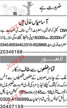 Marketing Staff required in Lahore.