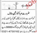 Marketing Staff are required in Lahore. Send your hand Written Application along with Educational certificates, Domicile, Copy of CNIC and Recent Photographs