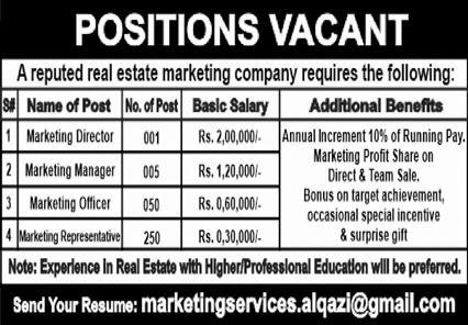 Marketing Staff Jobs in Real Estate Marketing Company