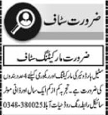 Marketing Company invites applications for job positions advertised in daily Mashriq dated 30 August 2025 for following vacancies in Hayatabad Peshawar, peshawar Khyber Pakhtunkhwa KPK Pakistan.