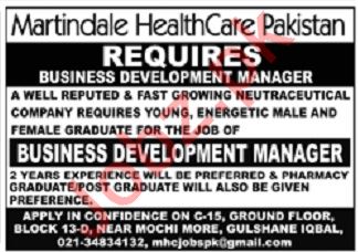 Vacancies in Martindale Healthcare Pakistan Advertisement October 2019