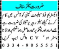 Food Supplement Company is looking for candidates for following posts as per job advertisement published in daily Mashriq Newspaper of February 12, 2024 for location Peshawar, peshawar Khyber Pakhtunkhwa KPK Pakistan: