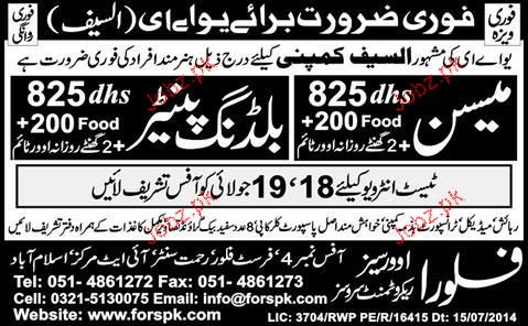 Mason And Building Painters Job Opportunity