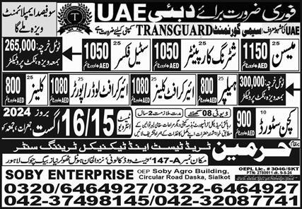 Harmain Trade Test & Technical Training Center jobs advertisement dated about 11 August 2024 in daily Express Newspaper invites application for the vacant post of helper, mason, aircraft cleaner, kitchen steward, shuttering carpenter and steel fixer in UAE, dubai UAE. Candidates with Matric, Primary and Middle etc. educational background will be preferred.
