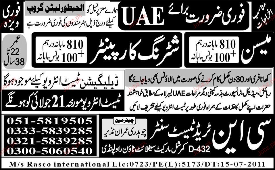 Mason and Shuttering Carpenter are Required in UAE