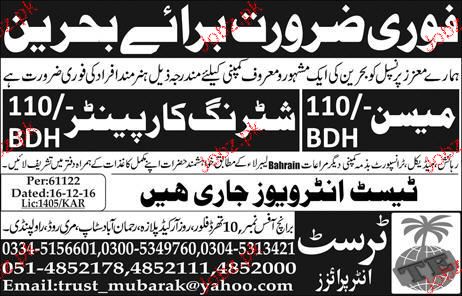 Mason And Shuttering Carpenters Job Opportunity