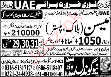 New Gondal Manpower Bureau is looking for candidates for following posts as per job advertisement published in daily Express Newspaper of May 28, 2023 for location UAE, dubai UAE: